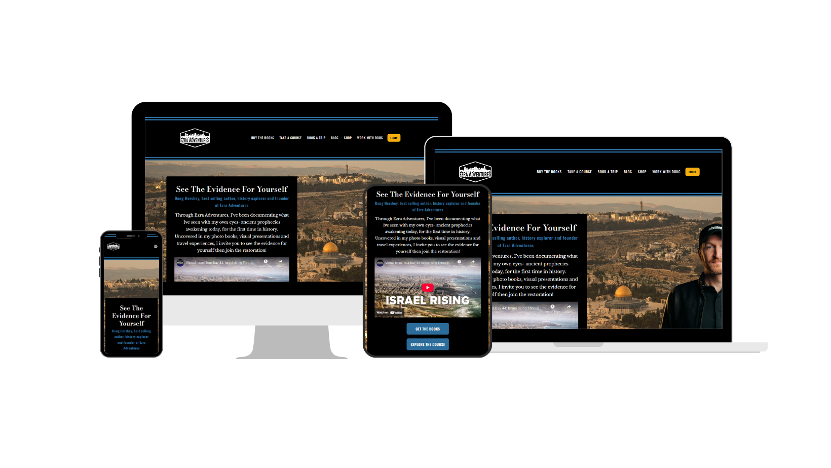 The new Ezra Adventures website presents a unified, professional brand that blends the personal and company identities seamlessly. Visitors can now easily navigate between trip offerings, courses, books, and media appearances while experiencing a consistent voice and design style. The site has streamlined the client’s marketing efforts, strengthened his online presence, and provided a platform that fully supports e-commerce, course hosting, content publishing, and brand storytelling.